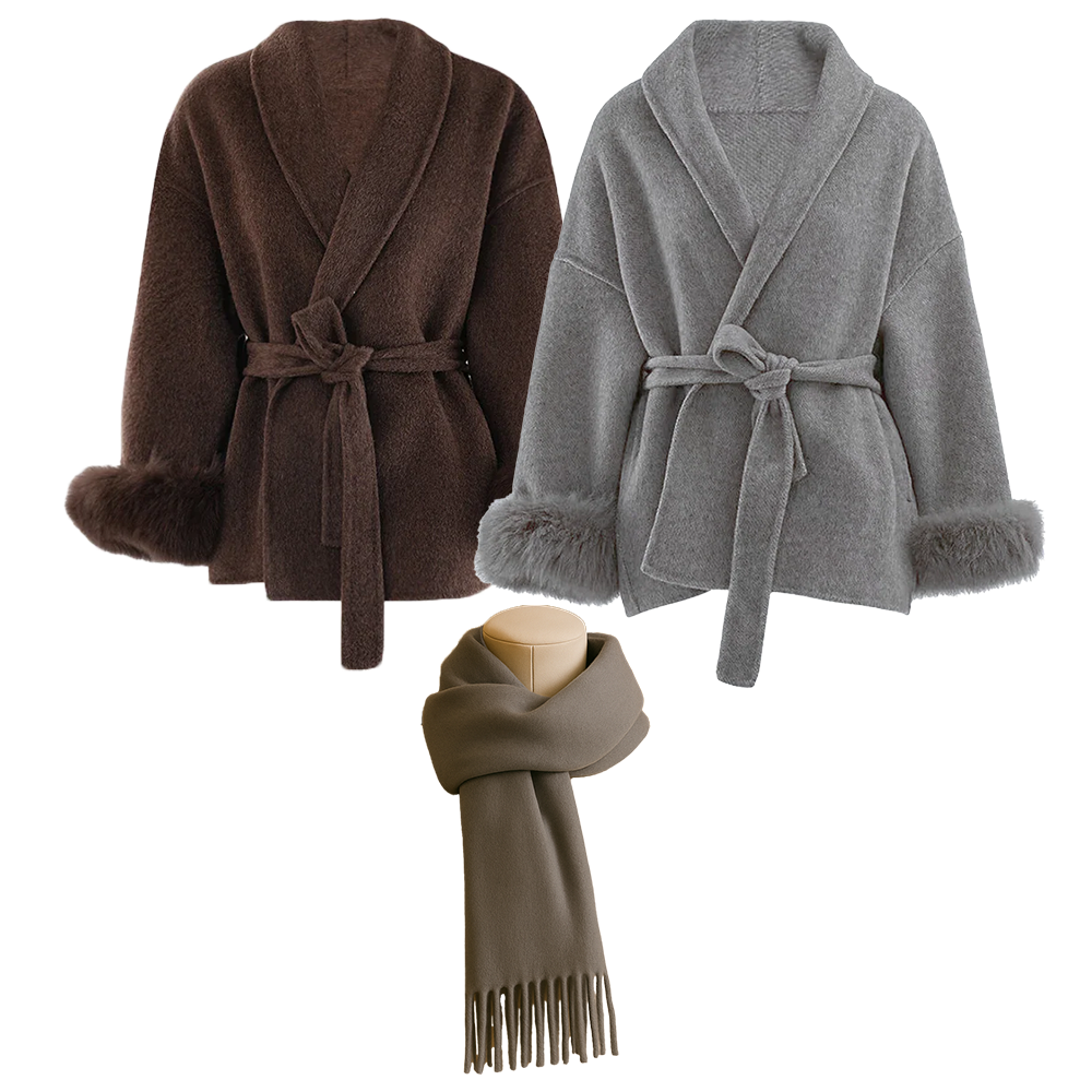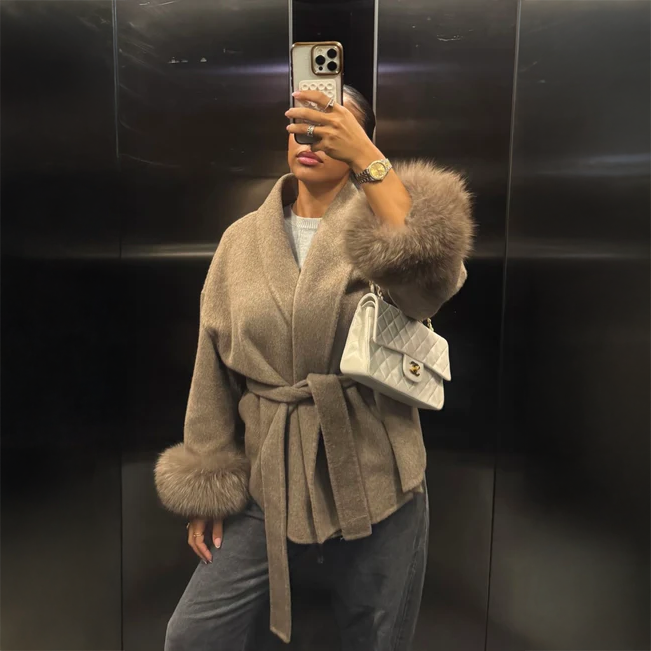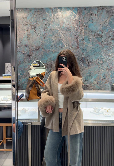 Effortlessly versatile — style it your way. Wear with or without the plush fox fur cuffs and belt to create three refined looks that suit any mood or occasion.